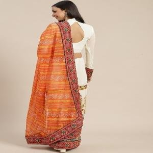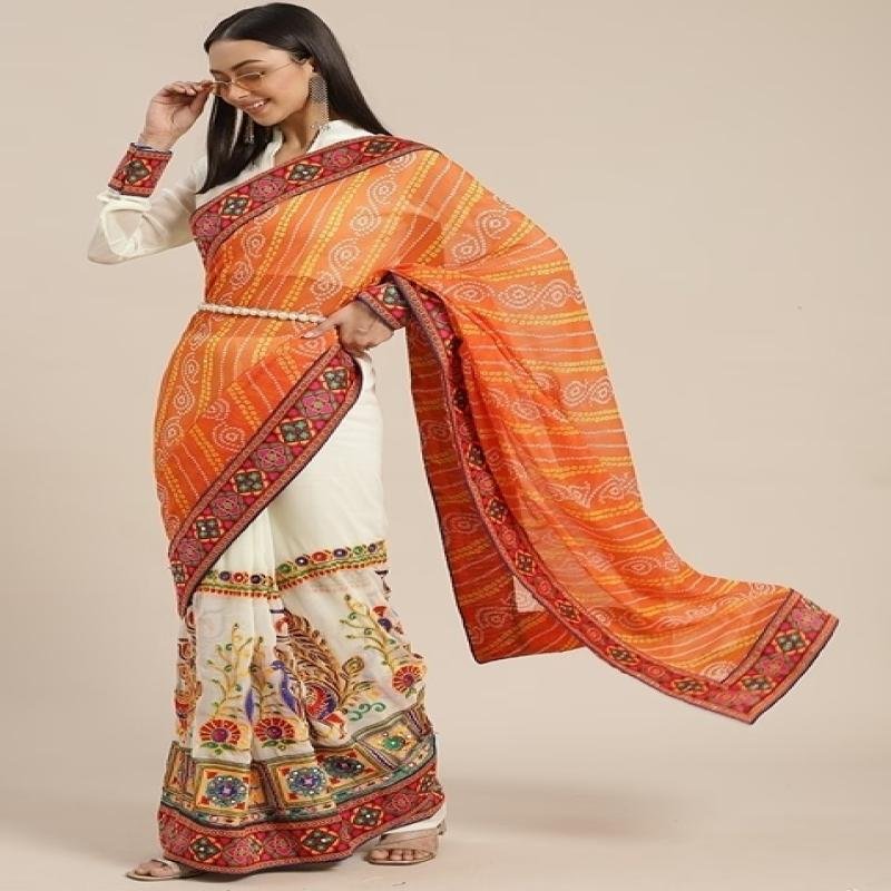 Cream And Orange Bandhani Print Georgette Saree Set - XSR20105