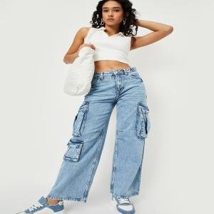 Elevate your casual wardrobe with these washed cargo jeans, designed for both style and functionality. With roomy cargo pockets, a button closure, and belt loops, they offer a comfortable, secure fit with a laid-back vibe.