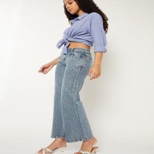 Step out in classic style with these low-rise washed kick flare jeans. Featuring a button closure, belt loops, and pockets, they offer a flattering fit with a retro-inspired flare.