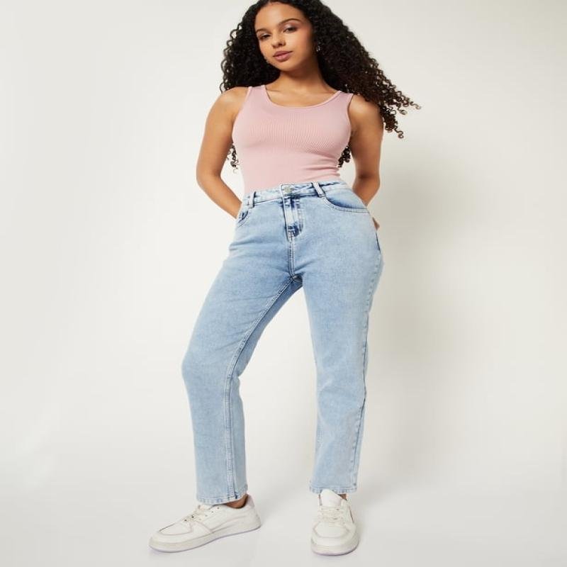 Update your denim staples with these washed slim straight jeans. Designed with a button closure and practical pockets, they offer a clean, versatile look that pairs effortlessly with any outfit.